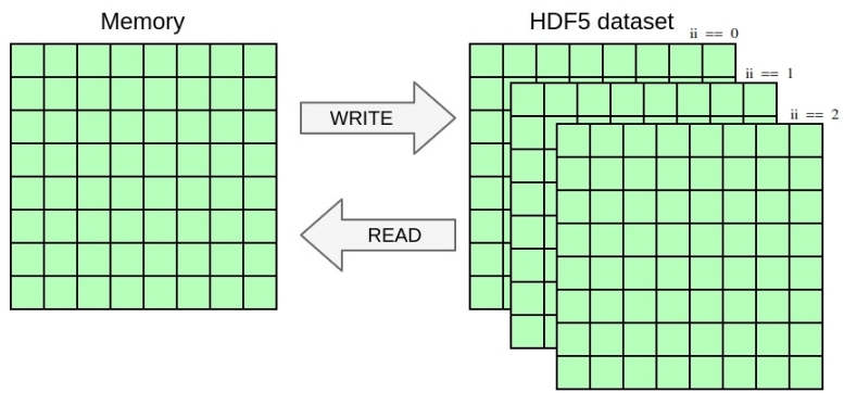 In this exercise, you will once again change the YAML file to handle a selection in the dataset in addition to the selection in memory from the previous exercise. You will write the 2D array from the previous exercise as a slice of 3D dataset including a dimension for time. Once again, you only need to modify the YAML file in this exercise, no need to touch the C file.